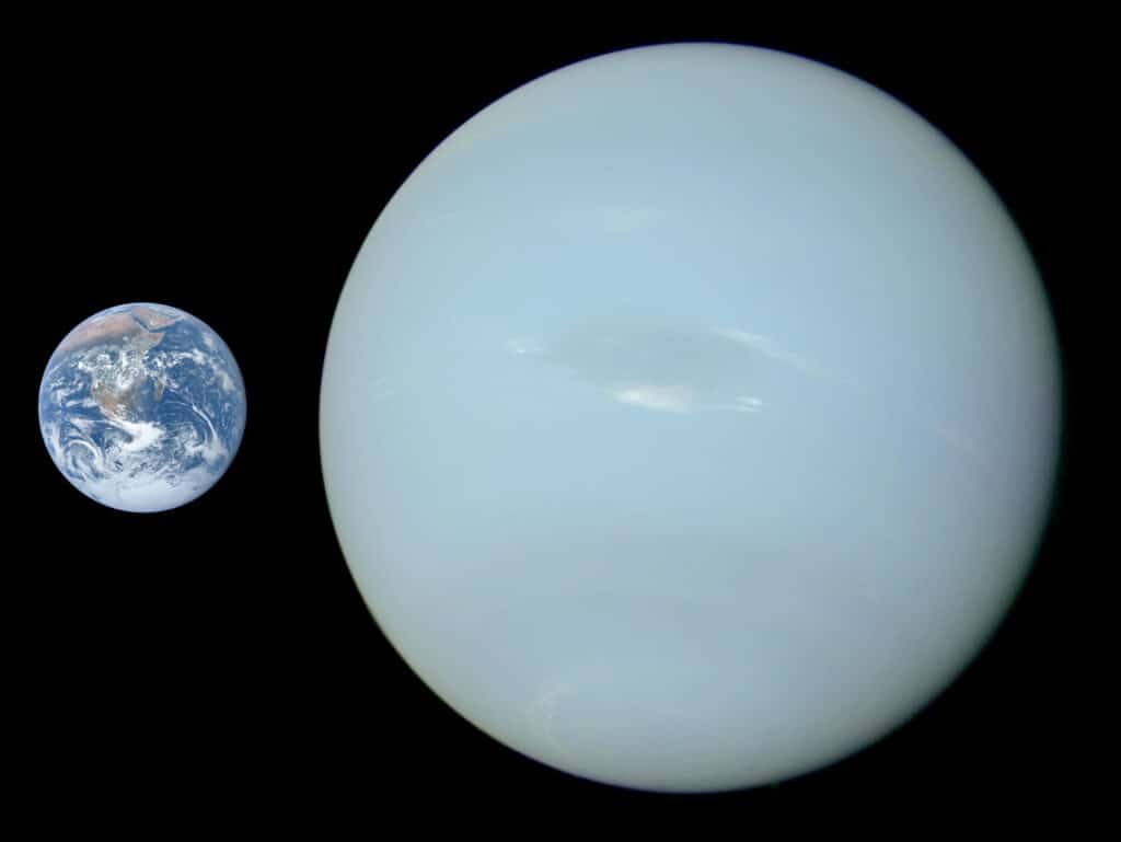 Neptuno tiene un diámetro de unos 49.244 kilómetros, lo que lo hace casi cuatro veces el tamaño de la Tierra. Su masa es 17 veces mayor que la de nuestro planeta.